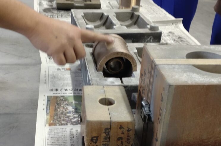 ポイントは製品が完成したときに、砂型の「空洞部分」は銅になり、「砂部分」は空洞になるということです。