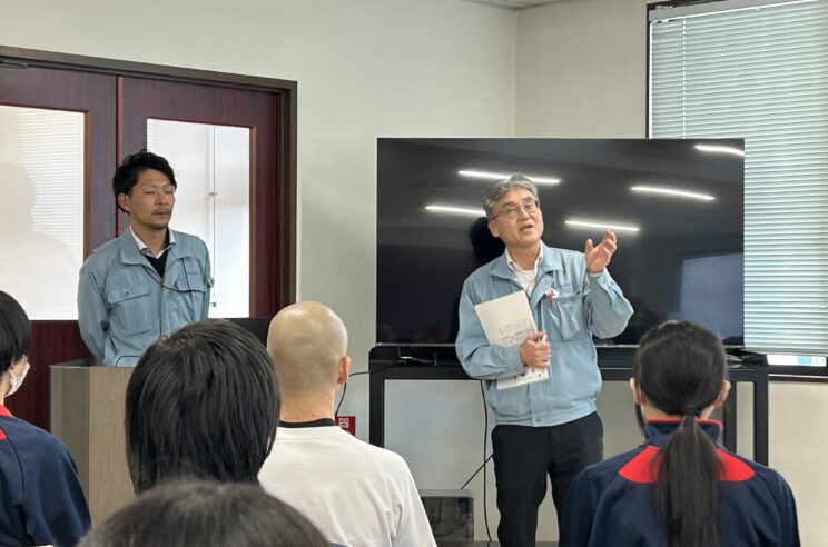 はじめに清水社長から、生徒の皆さんへ工場見学を通して感じてもらいたいことを語っていただきました。