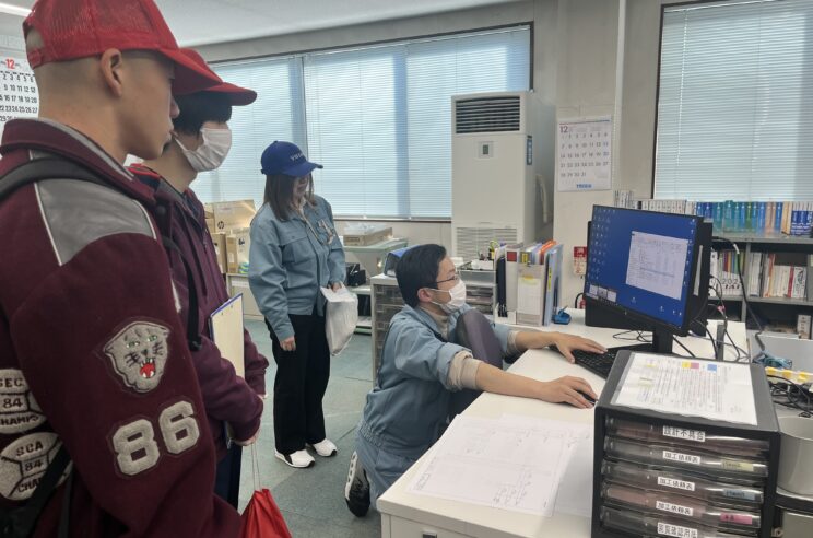 ユーシンには諏訪実業高校を卒業した先輩方が多く在籍しており、見学の途中にも「○○先輩がいた!」と声を上げる生徒の姿が見られました。