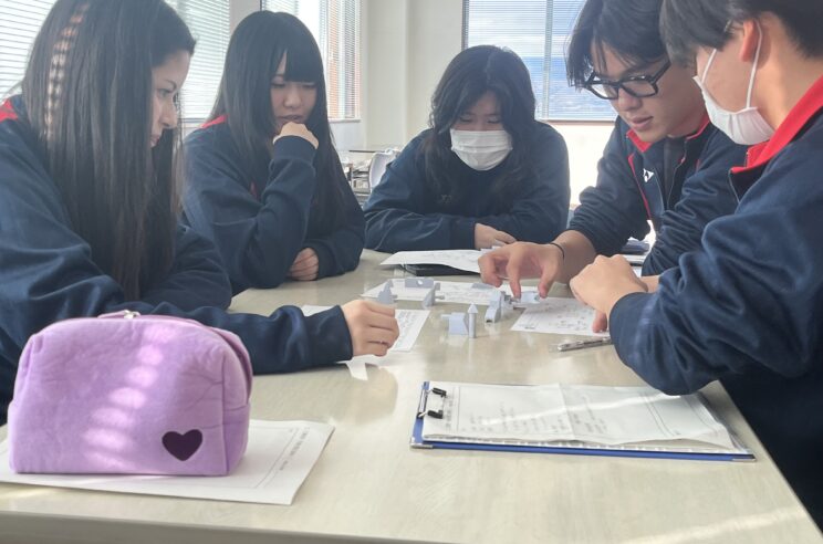 生徒たちは班ごとに協力し合い、悩みつつ答えを導き出していました。