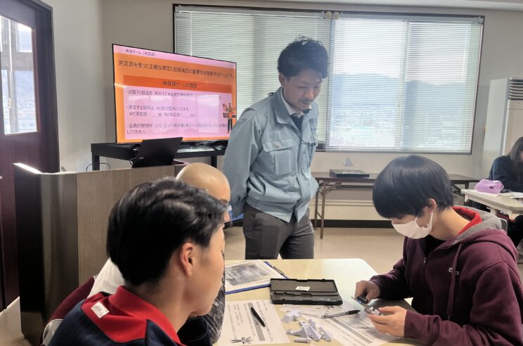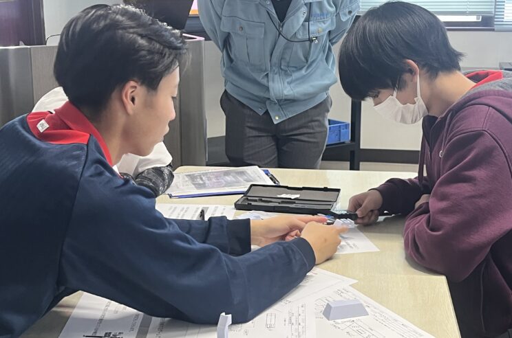 公差(決められた寸法からどのくらいの範囲までズレてもOKかの数値)についても説明してくださり、実際の現場ではミクロン単位で数値をそろえなければいけないという現場の正確さを学べたかと思います。