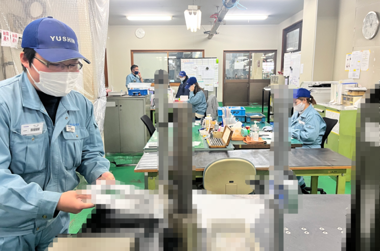 この部署を紹介してくださった奥井さんは、ユーシンでの仕事についてこう語ってくださいました。 「毎回作る部品が違うので手作業が多いです。でも、自分の手で考えながら作業するので、やればやるほど実力が目に見えてきます。」その言葉からは、ものづくりの難しさと同時に、確かなやりがいが伝わってきました。