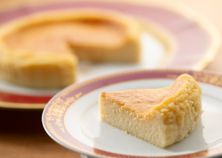 最初の試作品と最終的な完成品では、まったく異なる仕上がりだったとのこと。初期のケーキは、密度が高く重めの食感だったのに対し、完成したチーズケーキは、驚くほど軽く、口どけもなめらか。何度もの試作を経て、味も食感も洗練された逸品へと昇華していきました。